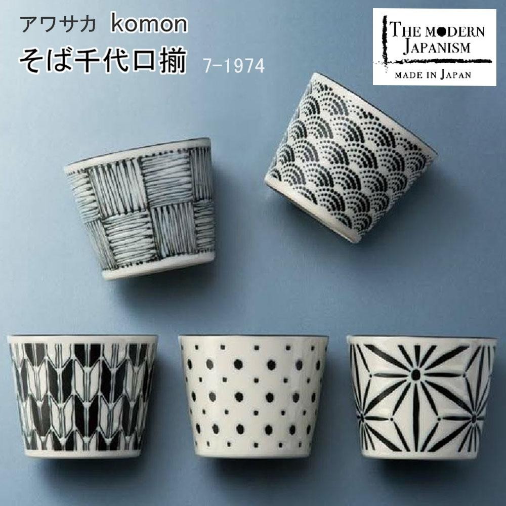 美しい日本の伝統模様を使用した、そば千代口揃です。 製造国:日本 素材・材質:磁器 商品サイズ:φ8×7cm 仕様:食洗機・電子レンジ使用可オーブン使用不可容量:200cc化粧箱入り セット内容:そば千代口×5 ※サプライヤー直送品 ご注文後5~6営業日後の出荷となります【商品名】アワサカ 日本製 komon そば千代口揃 7-1974