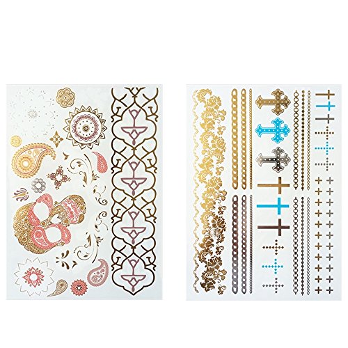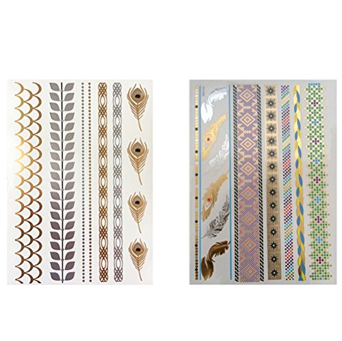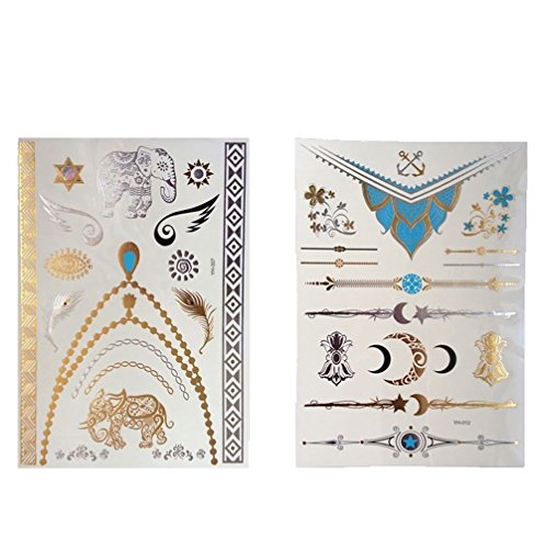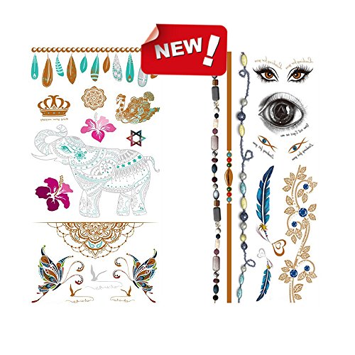 -. Feature : HUGE COLLECTION, 150+ TATTOOS! 8 Sheets of most fashionable and 2 Sheets of the very latest designs, including chevrons, infinity signs, necklaces, bracelets, Hawaiian tribal signs, & more! / PREMIUM QUALITY. Metallic flash temporary tattoos will last several days and keep its glitter look. / WATERPROOF. These awesome tattoos will not wash off. Show them off at the beach or pool party. / 100% SAFE TO USE. Non-toxic materials used these fun for all ages, including kids & adults, and can be worn anywhere on your body. / HAPPY CUSTOMER GUARANTEE. We're confident you'll love the new bling, so your order is backed by our 30-day money back for any reason, guaranteed.