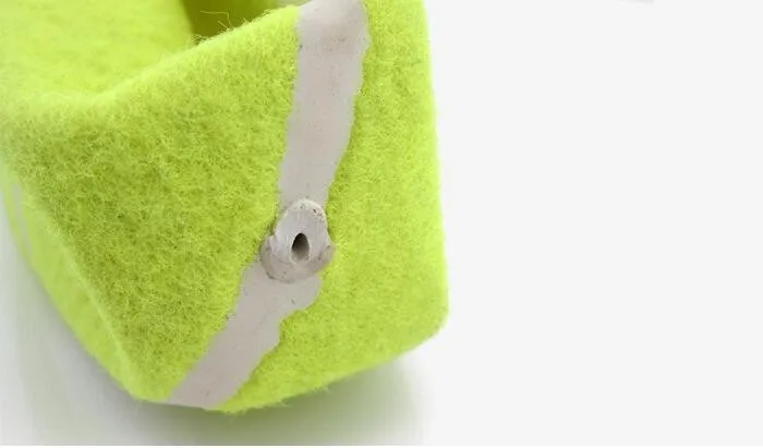 This ball is made of a rubber ball and ordinary tennis feeling. It is thicker than tennis balls. But if your puppy is fierce or ferocious, please choose carefully. Some children