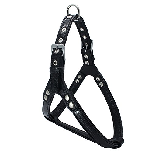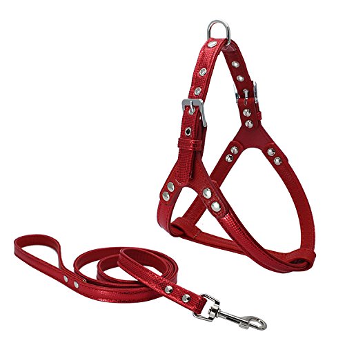 -. Feature : BEAUTIFUL,COMFORTABLE AND DURABLE - Soft leather dog harness and leash,thick,strong and not stiff,high quality,Solid simple Colored / PREMIUM HARDWARE - Using pure alloy casting,tough snap hook is corrosion resistant and easily operable with a single hand for effortless clasps,more outstanding and attractive / EASY TO WEAR - 5 adjustable eyelets make dogs comfortable and freedom,Allows the dog to have relaxed movement of muscles,makes it flexible and efficient,Great for walking and training / ATTENTION TO SIZE MEASUREMENT - Harness size fits chests 17"-21"(44-54cm)and neck for 16"-19"(40-50cm). Leash size:0.6"*47"(1.5*120cm)total length and recommended by trainers worldwide.Perfect for most small size dogs / FASHION AND BEST FOR GIFTS - Lighter weight,high quality leather and Beautiful stitching show this fashion style,make your pet pretty and beautiful