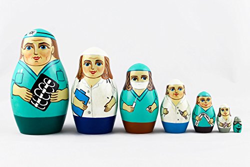-. Title : Matryoshka Russian Nesting Wooden Doll Physician Doctor Nurse Hospital 7 Pcs Stacking Hand Painting Beautiful Nested Matriosjka Matrioska Matreshka Matrjoska Matroeska