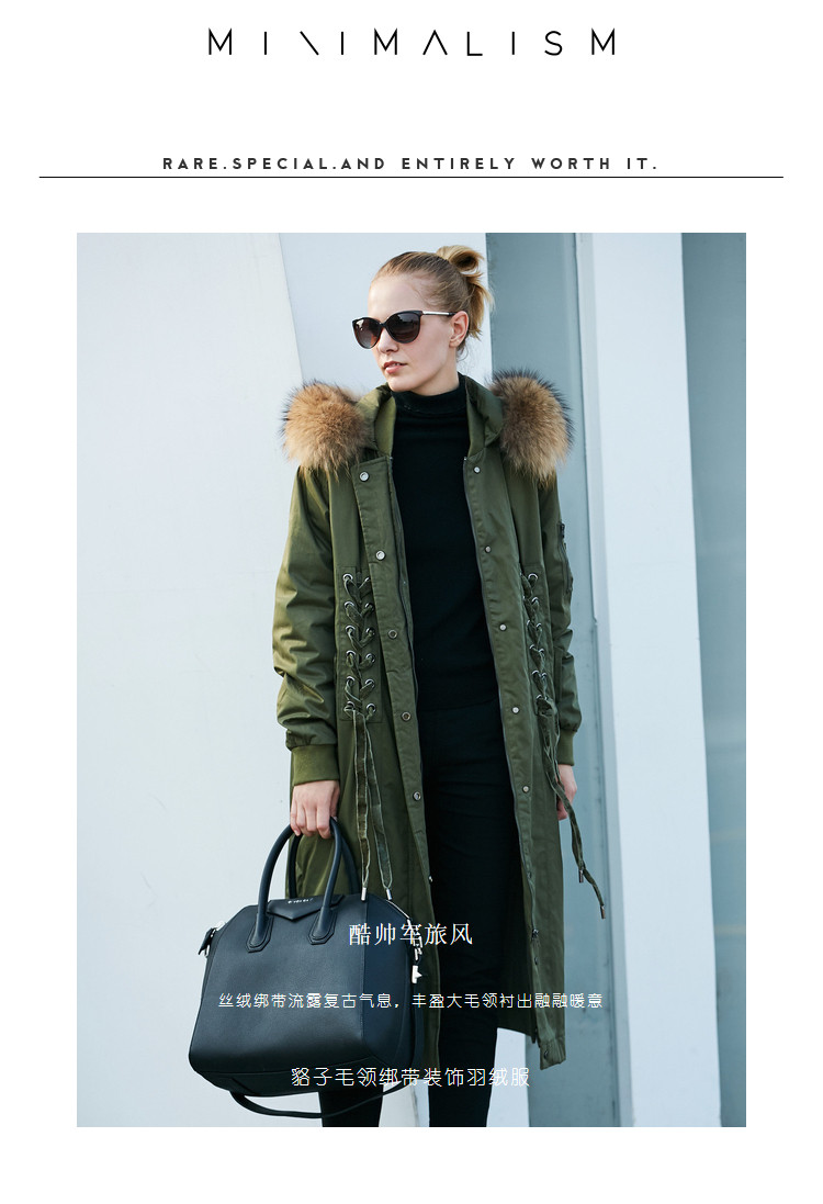 | 面料成分: | 面料:100%锦纶 里料:100%聚酯纤维 胆料:100%聚酯纤维 毛领:貉子毛皮 |
