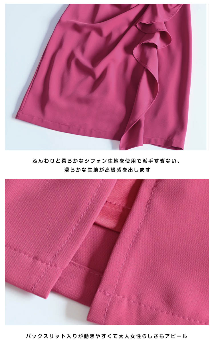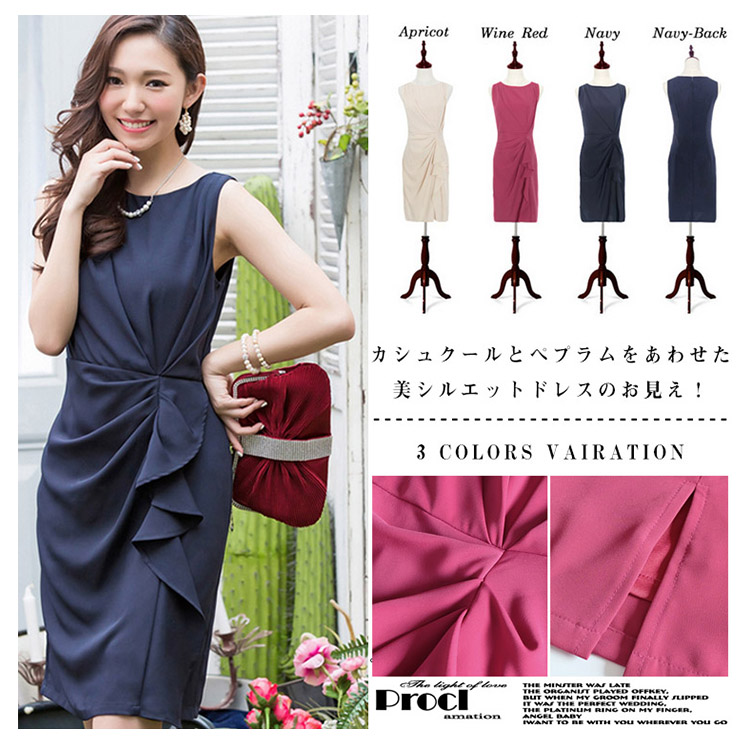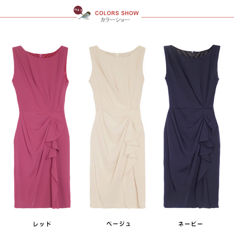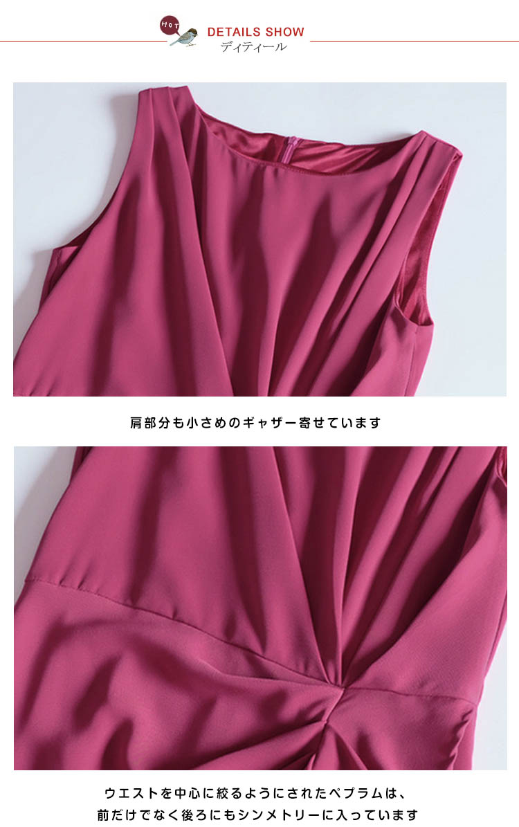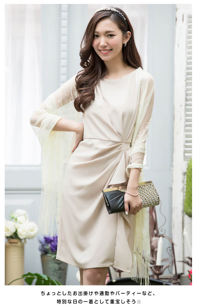 | カシュクールとぺプラムをあわせた美シルエットドレスのお見え!きれいなラインを出すよう計算されたタックが体型カバー効果も◎ふんわりとやわらかいシフォン生地を使用しているので肌触りも心地よいです。シックでエレガントな雰囲気を演出するカラー3色を揃えました。ちょっとしたお出掛けや通勤やパーティーなど、特別な日の一着として重宝しそう☆ | |