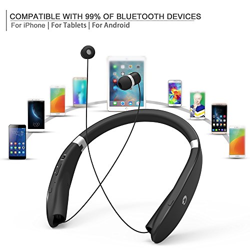 -. Title : Retractable Earbuds Foldable Headphone, GRDE® Neckband Style Bluetooth Headphone Headset, Wireless Sport Earphone Earpiece with Microphone, Compatible for most of Digital Equipment with Bluetooth