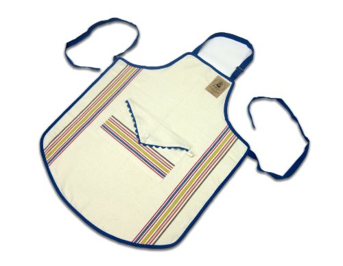 AUNT MARTHA'S 28-INCH BY 34-INCH COTTON ADJUSTABLE KITCHEN BIB APRON, DECORATIVE STRIPES WITH BLUE HEM AND FRONT POCKET