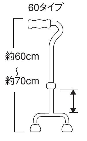 4点支持杖は1本杖とは違い、4本の足でささえているので安定感があり、スムーズに前進できます。グリップは樹脂製で握りやすく、ベース部はグリップ部を回転させることで右手用・左手用どちらにでも使えます。 |