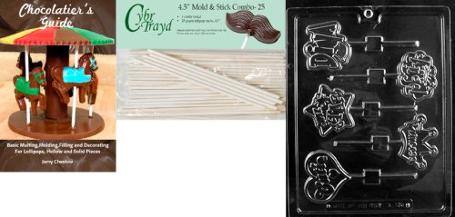 Cybrtrayd 'Diva, Princess, Angel Girly Pops' Kids Chocolate Candy Mold with 25 4.5-Inch Lollipop Sticks and Chocolatier's Guide