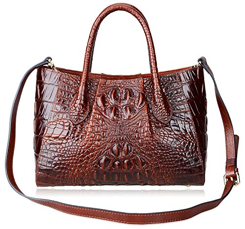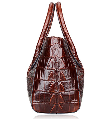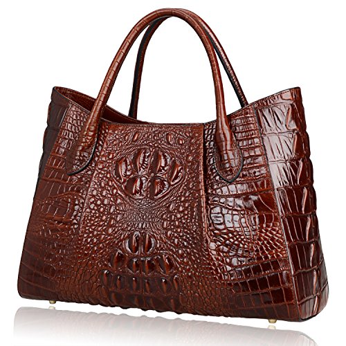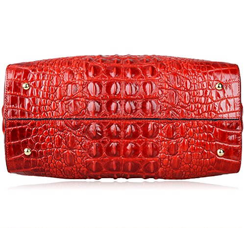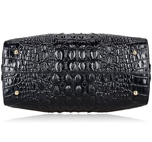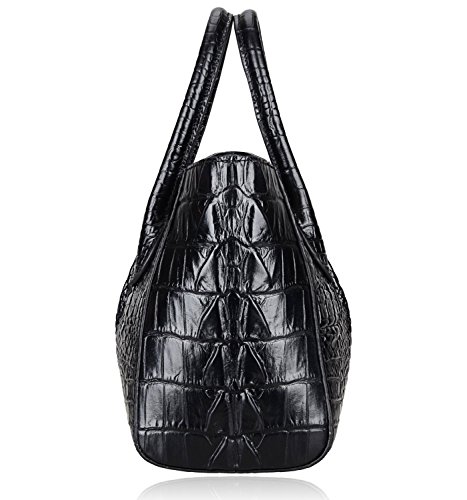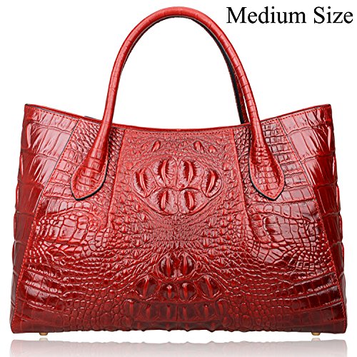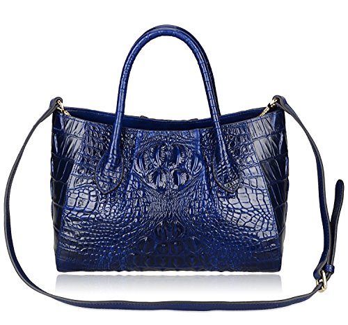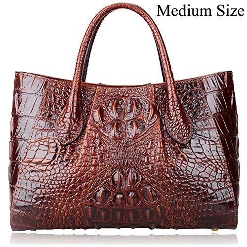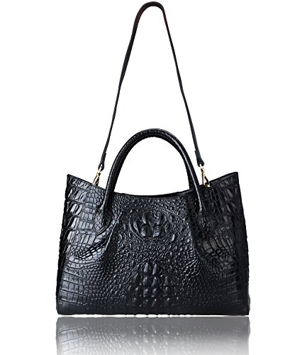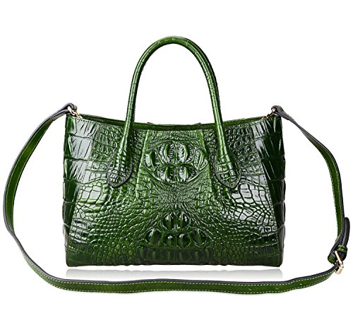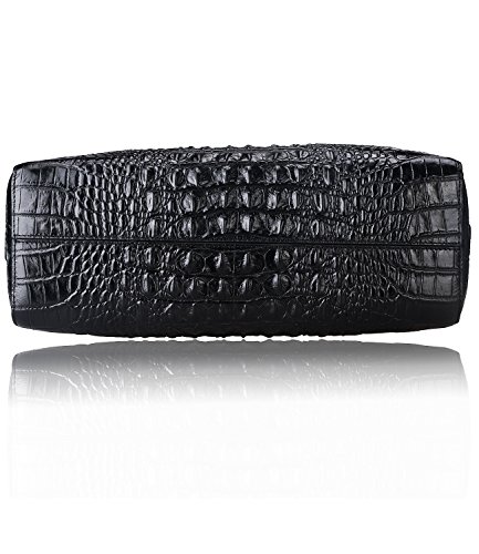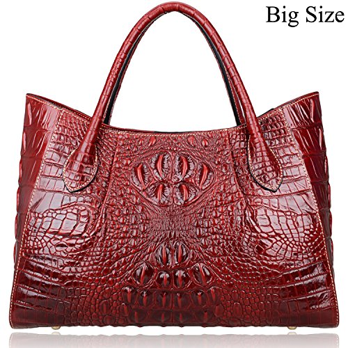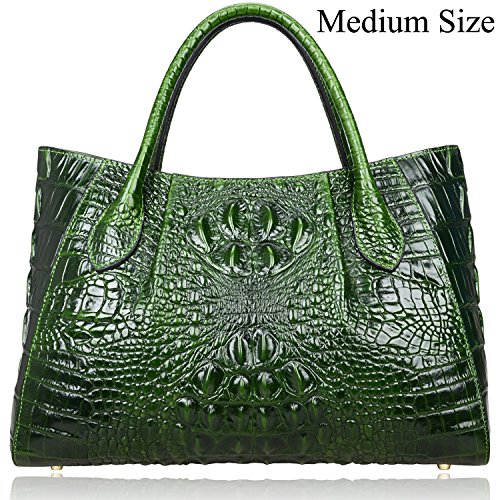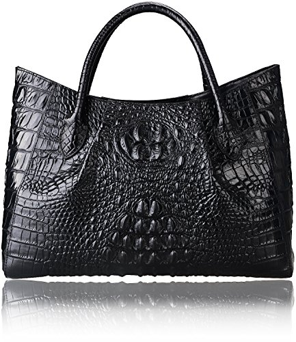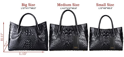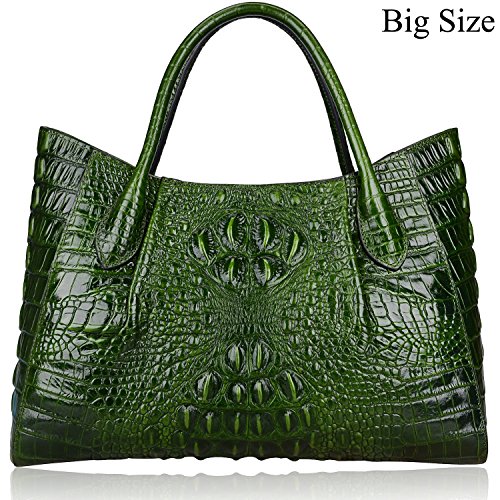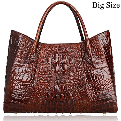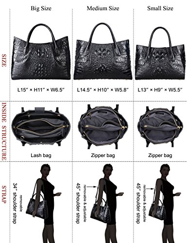 [Description] 100% Genuine leather: embossed crocodile leather Lining fabric_buckle closure Removable 34`` shoulder strap drop Large Size: L 15`` x H 11`` x W 6.5`` Feature buckle opening up to a large storage_A inside zipper bag in the handbags_ two open pockets on one side and one zipper pocket on another side for storage.Accented with a leather belt strap.