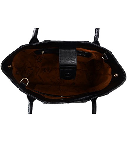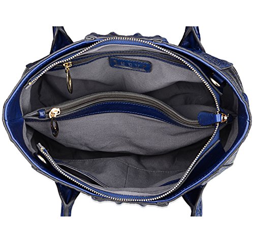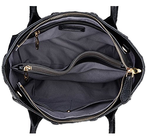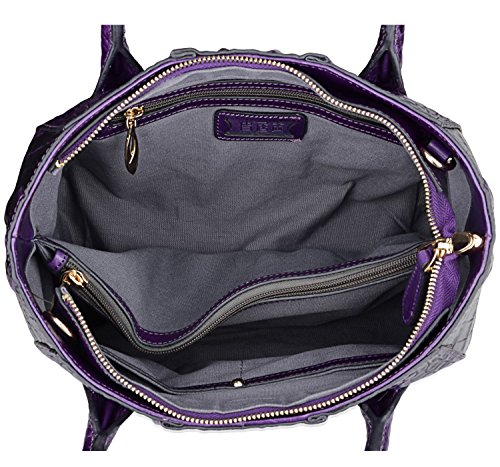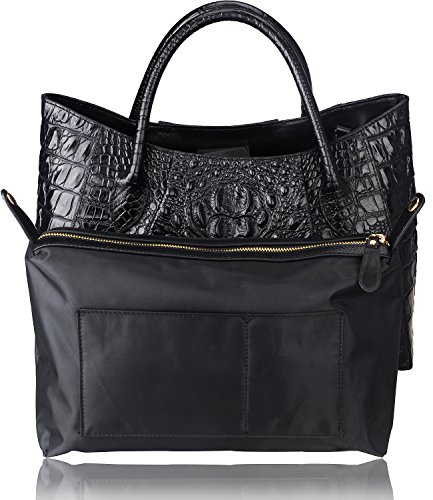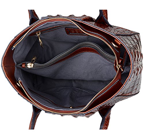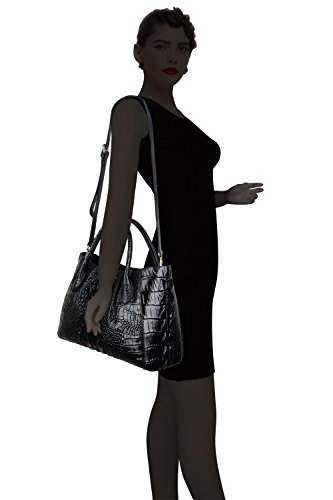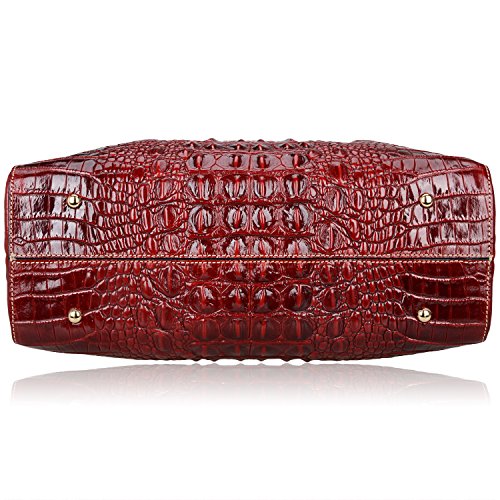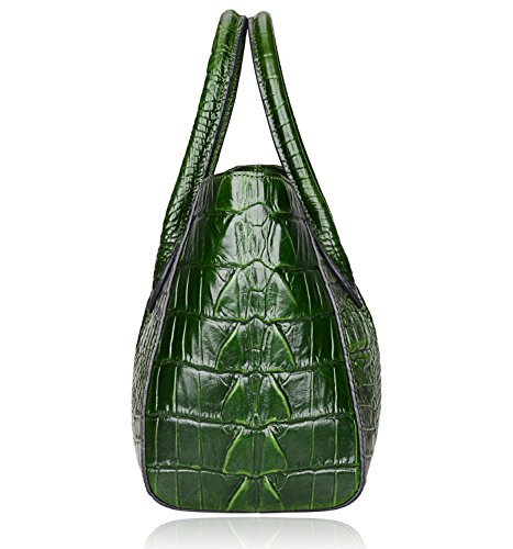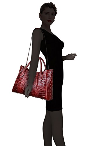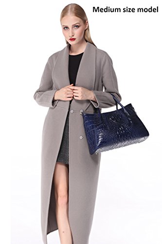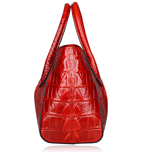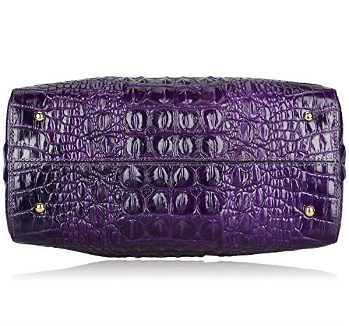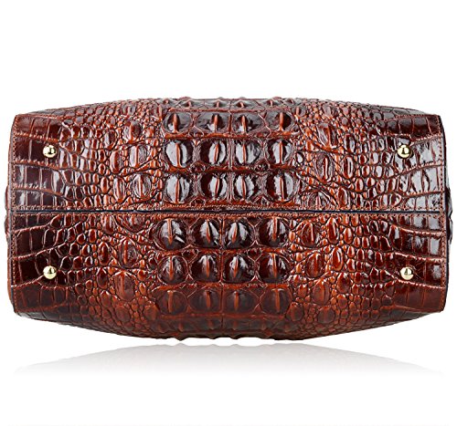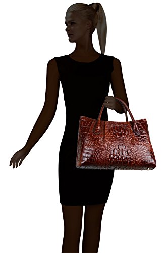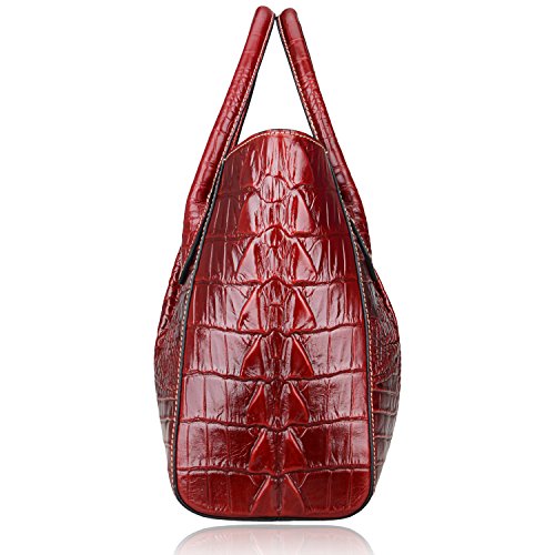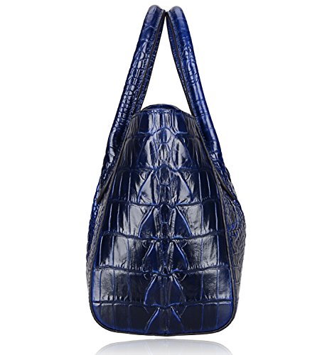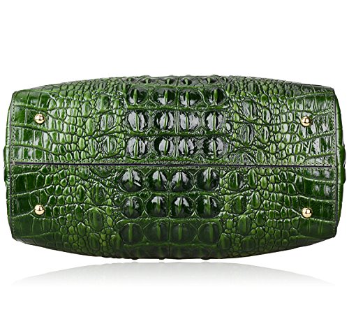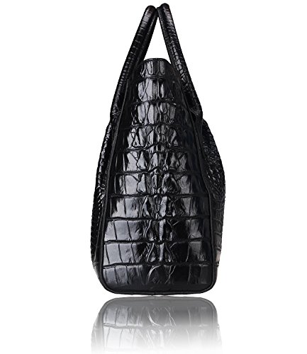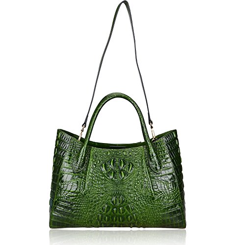 [Description] 100% Genuine leather: embossed crocodile leather Lining fabric_buckle closure Removable 34`` shoulder strap drop Large Size: L 15`` x H 11`` x W 6.5`` Feature buckle opening up to a large storage_A inside zipper bag in the handbags_ two open pockets on one side and one zipper pocket on another side for storage.Accented with a leather belt strap.