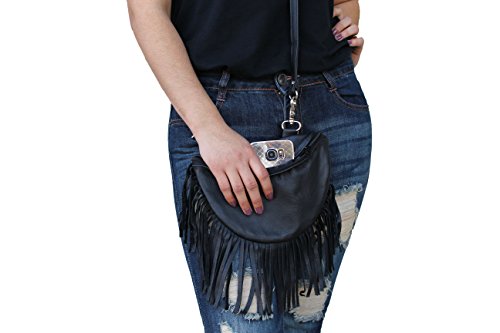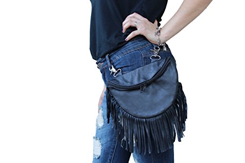 (Juzar Tapal Collection)/Accessories/Luggage, Bags Travel/DIRECT FROM USA/Women's Biker's Leather Fringe Fur Cross Body Bag I phone 8 Loop Fanny Pouch Lobster Claw Hook ...