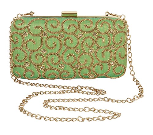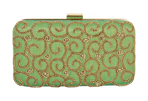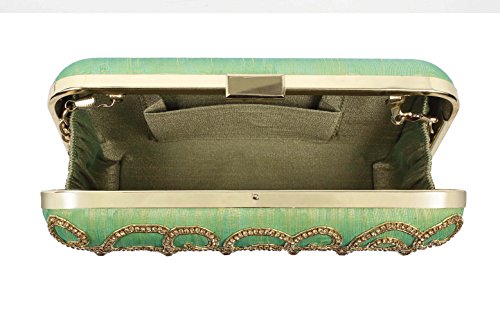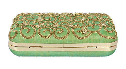 (Purse Collection)/Accessories/Handbags/DIRECT FROM USA/Purse Collection Stylish Party Wear Beaded Green Clutch For Women's