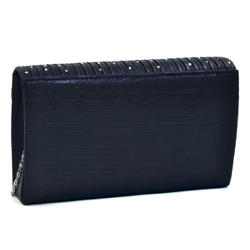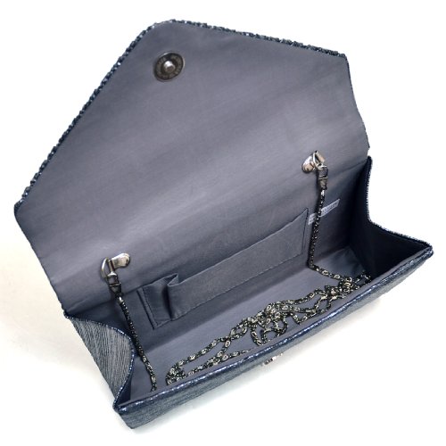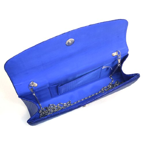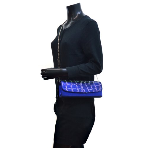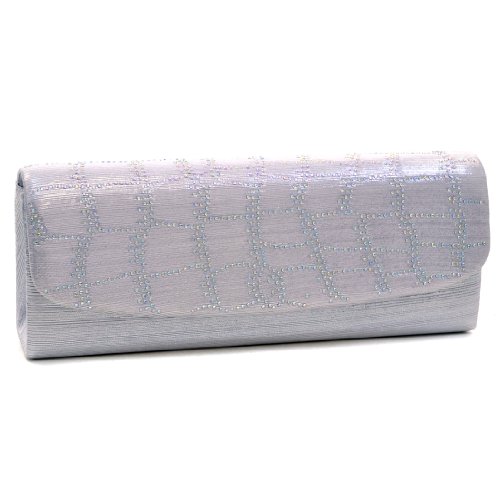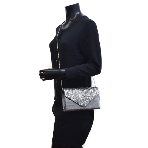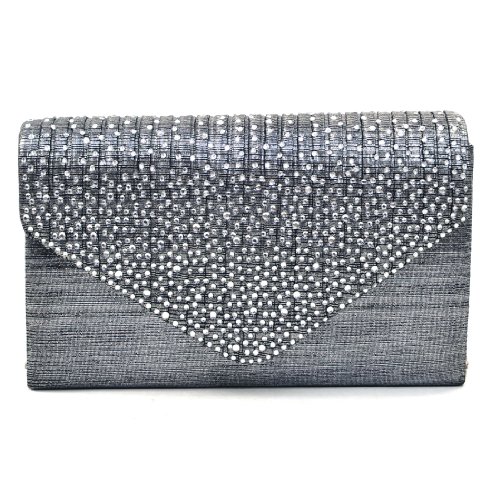 -. Feature : Material: Made of high quality polyester / Dimensions: 8.5"W x 5"H x 2"D, Detachable 40" chain strap / Closure: Subtly pleated flap with magnetic closure / Pockets: Interior features a back-wall multifunctional pocket / Features: Rhinestones in variety of sizes on flap, Silver tone hardware, This tall evening envelope style clutch is frosted with glistening rhinestones that will make you glow during your special occasion. Inside can easily fit a cell phone, wallet, compact mirror, lip gloss, and a pack of gum.