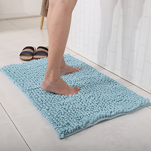 Bath Mats Non Skid for Tub for Kids Mildew Resistant Microfiber, Noodle Bathroom Rugs Blue Machine Washable 31.5"x19.6"