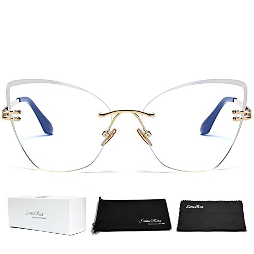 SamuRita Gradient Tinted Color Lenses Rimless Cateye Sunglasses