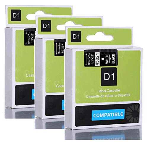 Wangsale Generic Replacement Label Tape Compatible for DYMO D1 45021 12mm x 8m 1/2-inch 23-foot Cartridge (3 PK White on Black)