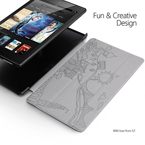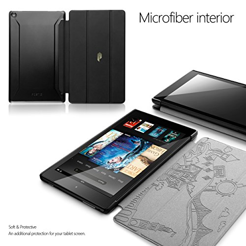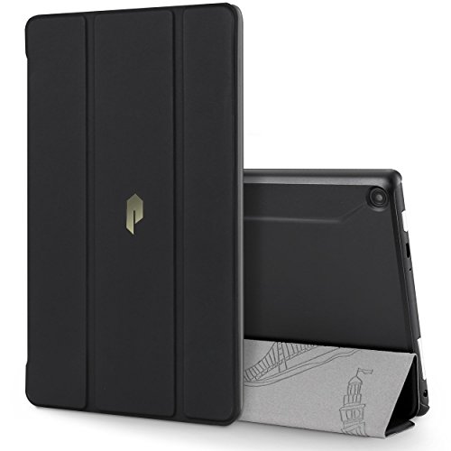 Fire HD 8 Case, Poetic Slimline Series [Lightweight] [Ultra-slim] PU Leather Slim-Fit Trifold Cover Stand Folio Case for Amazon Fire HD 8 (2016) Black/Black