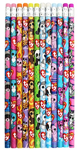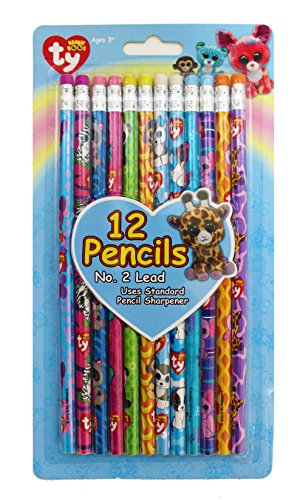Ty Beanie Boos Number 2 Lead Pencils, 7.5 x 0.5 Inches, Pack of 12, Assorted Character Designs (815-6)