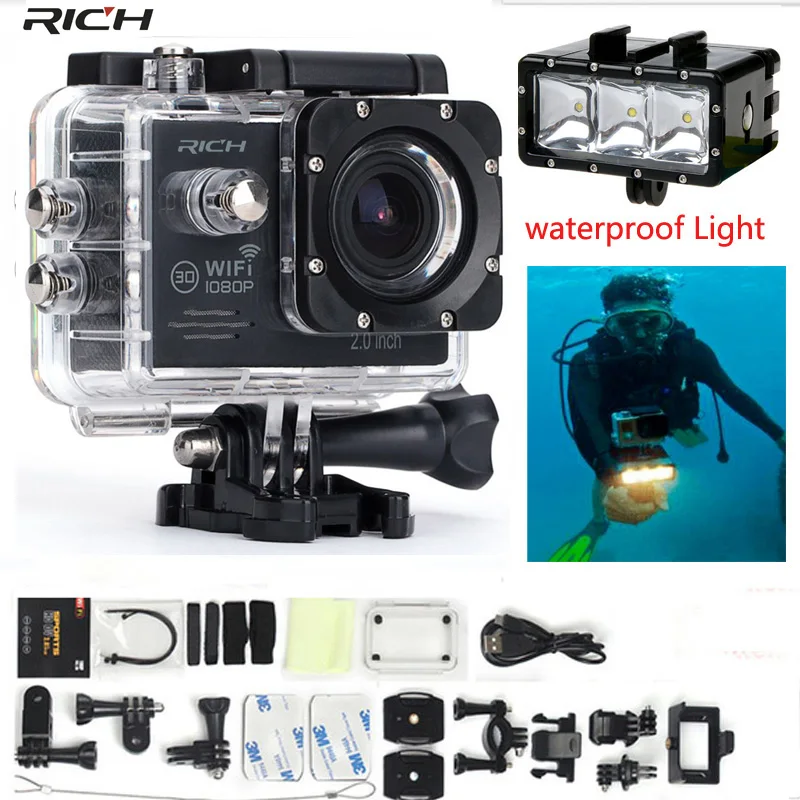 1 x Sports Camera , 1 x Built-in Battery, 1 x Waterproof Case, 1 x Bicycle Stand, 1 x Base 1, 1 x Base 2, 1 x Clip, 1 x Fixed Base, 1 x Switch Support 1, 1 x Switch Support 2, 1 x Switch Support 3, 1 x Adapter, 1 x Helmet Base, 1 x Bandage, 1 x Ribbon, 1 x 3M Adhesive Tape, 1 x Data Wire, 1 x Charger, 1 x Manual, 1 x Wiperu0026nbsp;