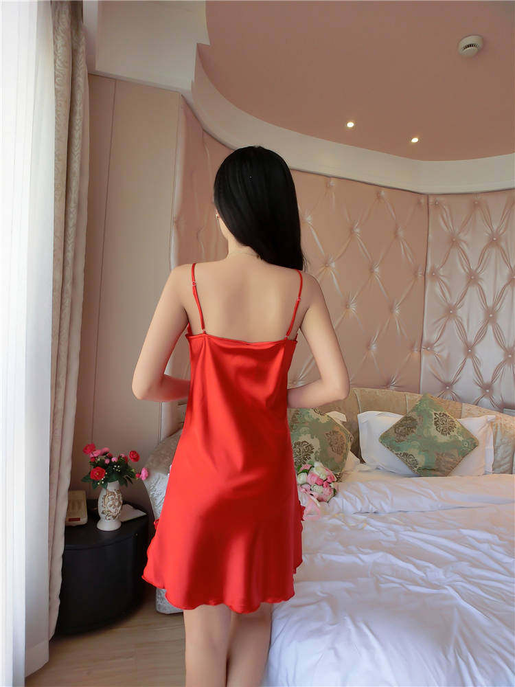 性感女睡衣裙夏丝绸诱惑冰丝吊带睡裙女士睡衣蕾丝大码可爱春秋季