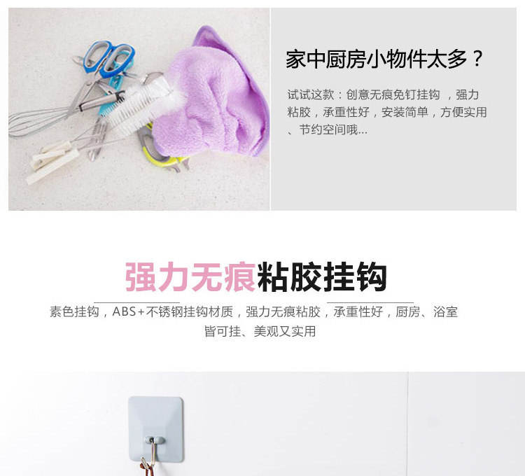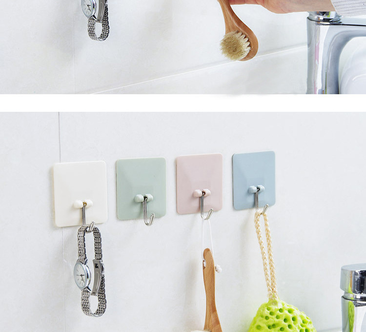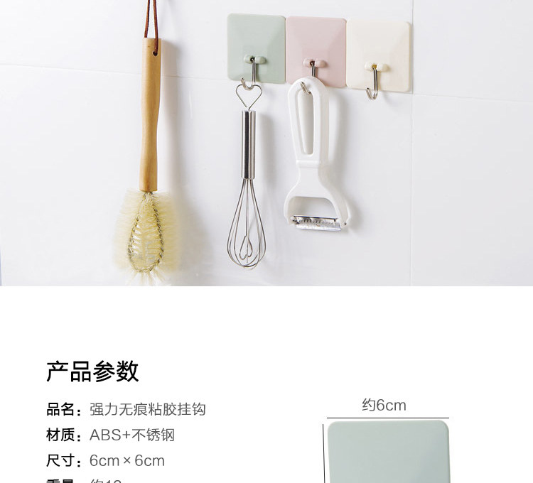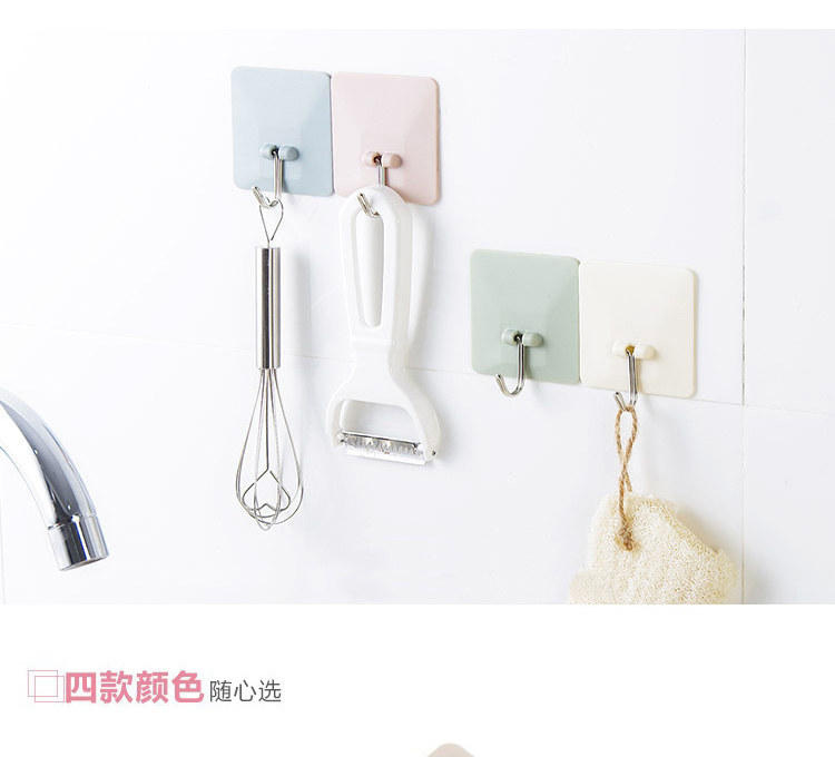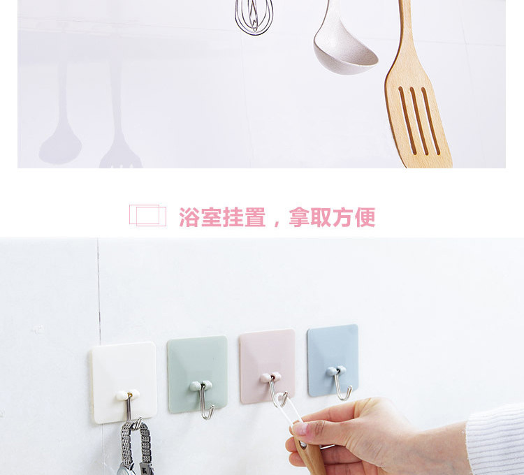 厨房墙壁无痕挂钩素色方形免钉强力粘胶挂钩浴室粘钩4个装