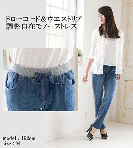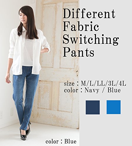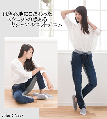 -. Feature : 人気のニットデニム生地使用し、楽に履ける事にこだわって作られたデニム&スウェット素材の切り替えニットデニムです。 / 柔らかさの伝わるデニムのようでデニムではない、ストレッチ性の高いスウェット生地を採用したロングパンツ。履き心地は楽チンで、部屋着・お出かけにと幅広いコーデが楽しめます。 / ウエストはドローコードとリブで調整可能となっており、締め付け過ぎない嬉しいノーストレススタイル!! ベルト無しでもゆったり履くことが可能です。 / バックポケットは表素材と同様のニットデニムを使い、切替えでオシャレなアクセントに♪ お洒落とゆったりを両立したい人におすすめのスウェットデニムパンツです。 / 【素材】コットン(綿)95%、ポリウレタン(PU)5% 【サイズ】M・L・LL・3L・4L ※ 各サイズの寸法詳細は下記の商品説明欄をご覧下さい。※ モデル:T162 B86 W57 H82 (cm) 着用サイズ:M サイズ