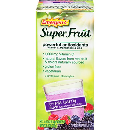 -. Title : Emergen-C Super Fruit Dietary Supplement with 1000 mg Vitamin C Gluten Free, 30 Count, Triple Berry Blast Flavor