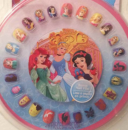 Press on Nails for Girls with Princess Nail File, 25-pieces. This set includes Disney Princess designs with Princess Faces, friends and images from the movies. 12 press on nails with Princess faces including Snow White, Ariel, Cinderella, Belle, Rapunzel and more! And another 12 press on nails with images and friends from the movies and shows. Great for dress up play for little girls; not for children under 3 years of age. For a great gift, try Disney Princess Press on Nails for Girls.Feature
