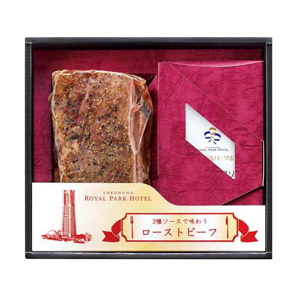 ●”横浜のシンボル”とも言える横浜ランドマークタワー。その中に位置する「横浜ロイヤルパークホテル」監修のローストビーフです。それぞれ特徴のある3種類のソースをご用意しました。