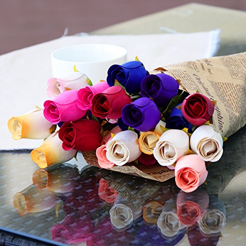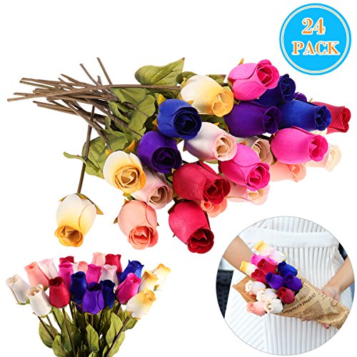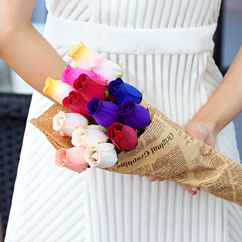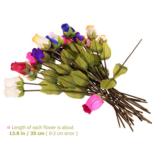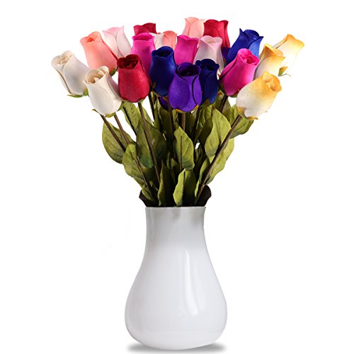 WINOMO 24pcs Wooden Rose Flowers with Stems Colorful Artificial Flowers Bouquet