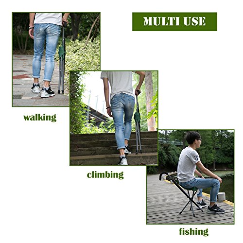 LOKEP Sports Folding Cane Chair Walking Stick with Seat 2 In 1 Fishing Beach Chairs Stool