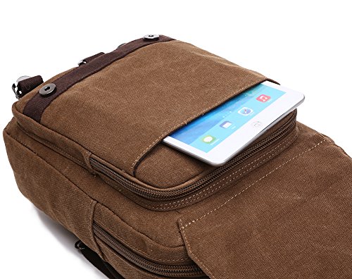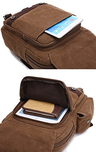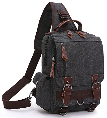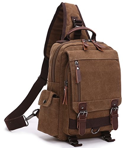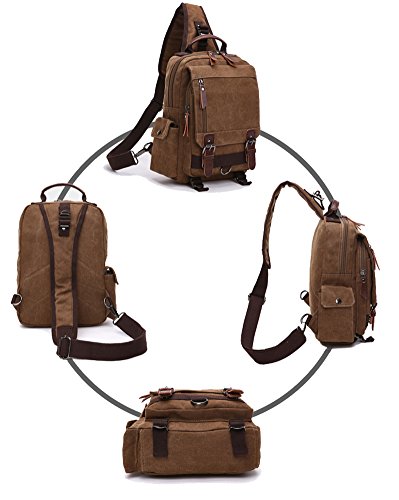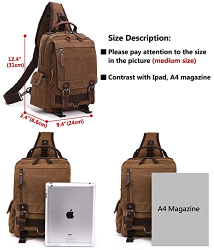 Product Description Product Features: - Made of high density canvas,leather decorate, durable hardware,vintage and classic. It's a very durable single-shoulder bag. - A unisex sling bag,a great gift for your friends,your families,your girl/boy friend and for yourself. - multi pockets meet your daily needs,it is easy to alternate the strap from the left to the right or the right to the left. - It is a great daypack for school, dating, shopping and traveling in daily life,also can be carried for outdoor activities, such as running, cycling, camping.