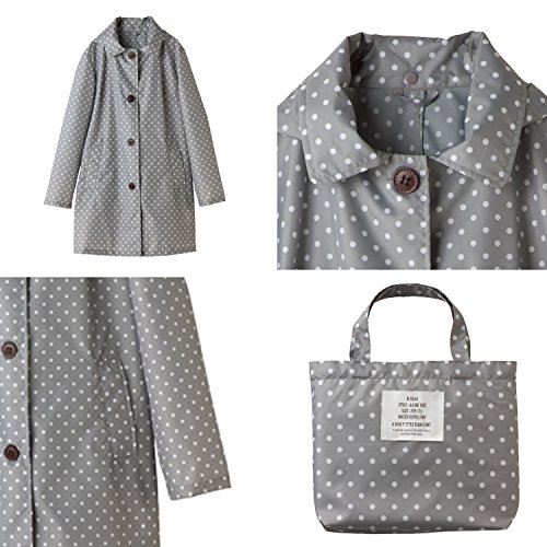 -. Title : レインコート トートバッグ型ケース付 Aラインドット 着丈81cm グレー (フリーサイズ) R-1054
