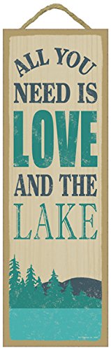 (SJT02556) All you need is love and the lake (mountain & lake image) lake primitive wood plaques, signs - measure 5" x 15" size.