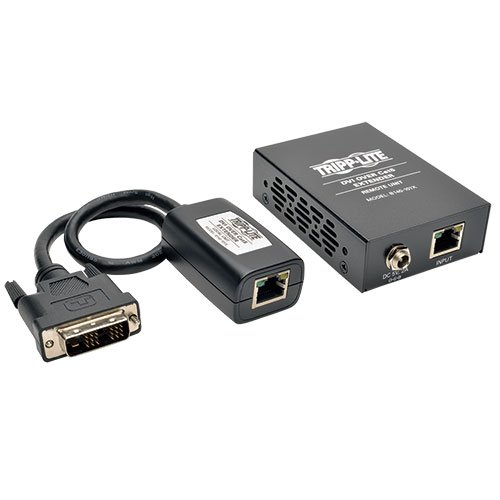 Tripp Lite's B140-101 DVI over Cat5 Passive Extender Kit is the perfect solution for those who need to extend a DVI-D Single-Link signal up to 100 ft. from the source. When using 24Awg, solid wire Cat5e/6 cabling (Tripp Lite N202-Series), the B140-101 can extend a 1024 x 768 (60Hz) signal up to 100 ft., or a 1920 x 1080 (60Hz) signal up to 50 ft. Installation is quick and easy: Simply attach the local unit to your DVI source, attach the remote unit to your display, and then connect a Cat5e/6 patch cable between the two. The signal will be sent with perfect video quality. Compliant with the Federal Trade Agreements Act (TAA) for GSA Schedule purchases.Feature