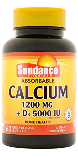-. Binding : Health and Beauty -. Brand : Sundance -. EAN : 0840093102393 -. Feature : Promotes bone health / Supports immune system health / May reduce the risk of osteoporosis -. IsAdultProduct : 0 -. Label : Piping Rock Health Products -. Manufacturer : Piping Rock Health Products -. NumberOfItems : 1 -. PackageQuantity : 1 -. ProductGroup : Health and Beauty -. ProductTypeName : HEALTH_PERSONAL_CARE -. PublicationDate : 2015-07-18 -. Publisher : Piping Rock Health Products -. ReleaseDate : 2015-07-15 -. Studio : Piping Rock Health Products -. Title : Sundance Calcium 1200 mg Plus Vitamin D3 5000 IU Tablets, 60 Count -. UPC : 840093102393