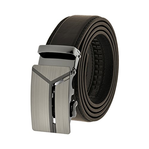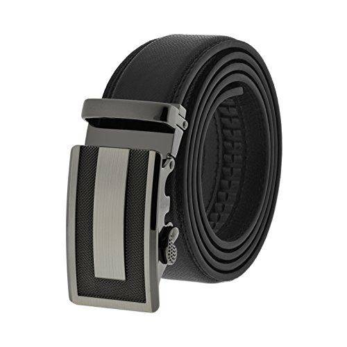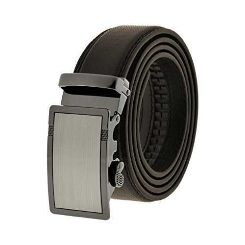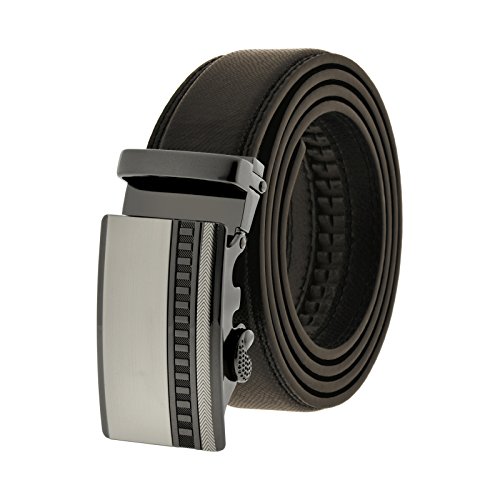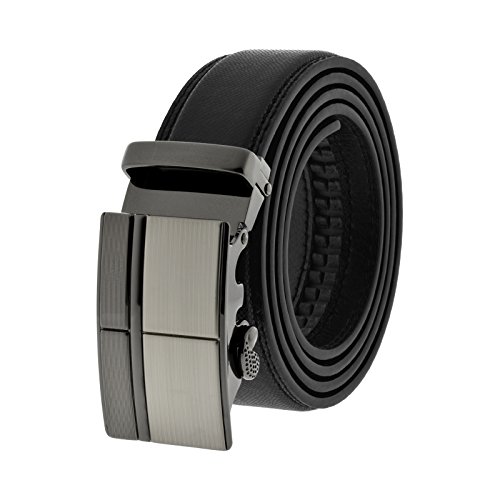 The Automatic Comfort buckle clicks into the perfect place and provides an incredible 8 inches of adjustability. This black leather belt set includes both the removable buckle and the classic belt.