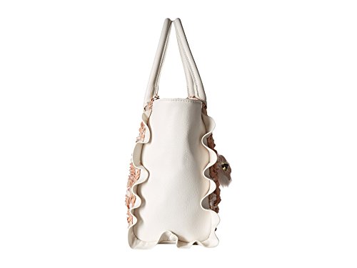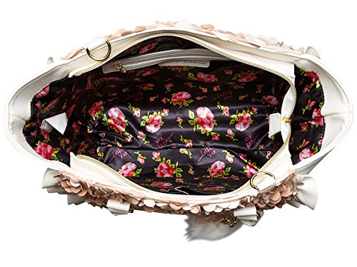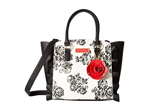 The Betsey Johnson® Leather & Lace Satchel is the perfect combination of feminine and edgy style! Made of synthetic leather. Zipper closure. Two rolled carrying handles. Removable and adjustable crossbody strap. Exterior features ruffle accents and a removable charm detail. Flat base. Lined interior features one zip and two slip pockets. Imported. Measurements: Bottom Width: 10 in Depth: 4 1⁄2 in Height: 10 in Strap Length: 19 in Strap Drop: 8 1⁄2 in Accessory Strap Length: 38 in Accessory Strap Drop: 18 in Weight: 1 lb 11.8 oz This product may have a manufacturer's warranty. Please visit the manufacturer's website or contact us at warranty@support.zappos.com for full manufacturer warranty details.Feature