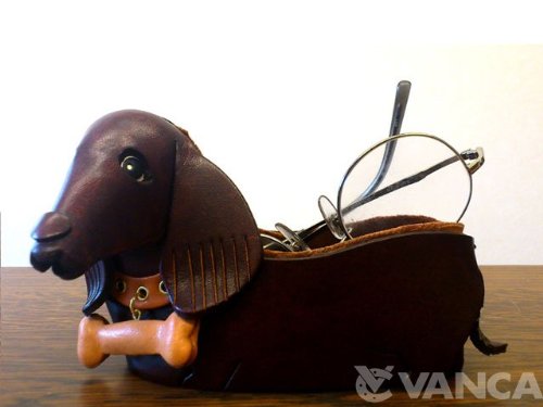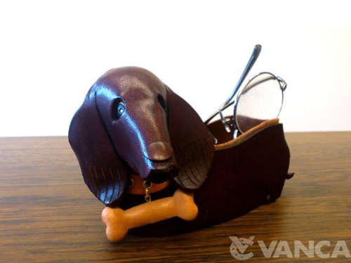 - Title : Dachshund Genuiine Leather Animal/Dog Eyeglasses Holder/Stand *VANCA* Handmade in Japan