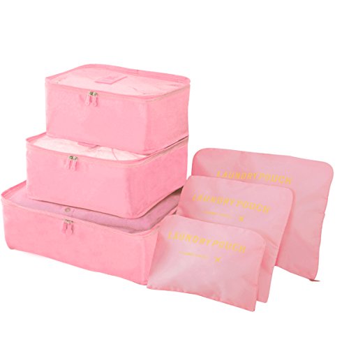 Product Description HongyuTing 6Pcs Waterproof Clothes Packing Cubes Travel Luggage Organizers This packing cube will perfectly solve the one of toughest things that you want to fit everything that you need to bring into your luggage. Our packing cube system fixes that issue by neatly packing all your clothes tightly into our space saving bags. It allows you to easily store and organize your clothing , reasonably arrange luggage space to make your life more convenience. It protect your clothes from wrinkle, dust and damage. There are 3 Laundry Pouches to separate clean and dirty clothes or carry your small things.