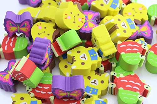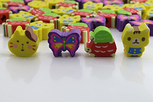 Packaged included:Set of 50 Pencil Erasers Assorted Animals,Fruit,Flower,cake and etc