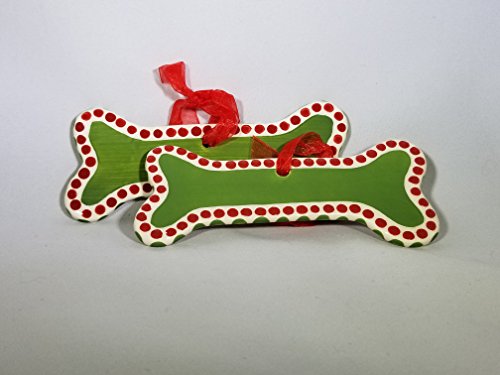 M. Bagwell Ceramic Christmas Ornament, Green Dog Bone, 4.75" x 2", Set of 2