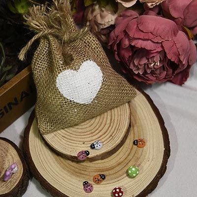 25pcs White Love Heart Print Natural Jute Hessian Burlap Bags Rustic Wedding Favors Party Gift Candy Boxes