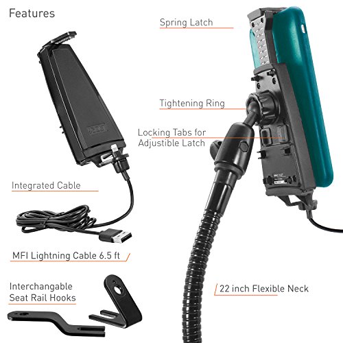 iBOLT iPro2 Flex- w/ MFI lightning cable- Heavy Duty Metal Seat Rail Mount - iPhone 5 / 5c/ 5s/ 6 / 6+ / 6s / 6s plus / SE / 7 / 7 plus. For Cars, Vans , Large Trucks : Great For Telematics and Fleets