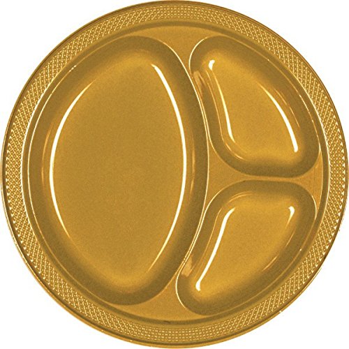 Studio : Amscan - Toys Publisher : Amscan - Toys Binding : Toy Product Description It all starts with color! This Gold Sparkle Divided Plates is perfect for your picnic, reception, and outdoor or catered event! Its color adds a cool feel to your dining atmosphere and can easily be mixed and matched with other unique colors to match your event's theme and decor. Three divided compartments-one large and two smaller-make for easy separation of protein, pasta, vegetables and fruit! Made of durable polystyrene, this plastic plate is durable and strong enough for heavier meals, or that extra helping of potato salad! Serve up salads, pasta, burgers, and more at your next event with this plastic plate. When your guests leave, cleaning up is easy because of the plate's disposability. 0