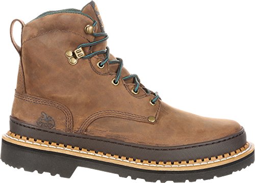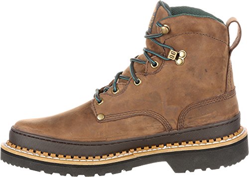 Work until the day is done in the Georgia Boot® Men's 6' work boots. These mid-height men's work boots provide durability and protection thanks to its full-grain leather uppers, a flexible yet sturdy Goodyear® welt construction and steel shank. A padded collar provides cushioning around the ankle, while the oil-resistant outsole lends reliable traction. Features: - EVA midsole for cushioning