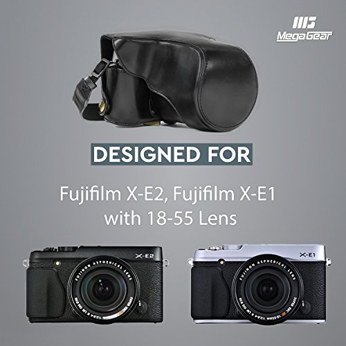 MegaGear Ever Ready Schwarz Leder Kamera, Tasche fur Fujifilm X-E2S, Fujifilm X-E2 mit 18-55 Objektiv Digital Kamera