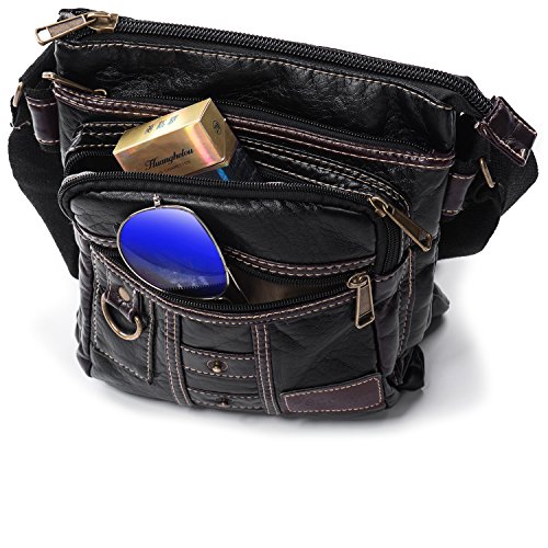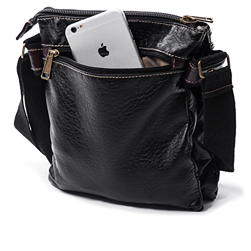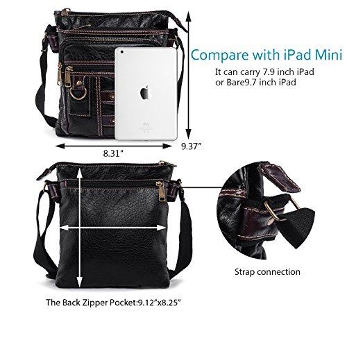 Binding : Electronics Product Description Whether you're boarding a plane for an overseas jaunt or hopping in the car for a weekend getaway,one thing is certain: Staying organized is the key to a stress-free trip. The Satchel is ideal for work, shopping, school, commutem, business trip or daily use. The Small Men Purse can hold keys, mini camera,wallet, map, sunglasses ,kindle,iPad Mini ,small stuffs and other miscellaneous for a day-hike around the city! Please carry it to enjoy your life! Basic Specifications Exterior:?3 Main Zipper Pockets:9.5"x8.25" 3 Front Pockets:the biggest one:8"x8.25",the second big one:7.12"x6.5",the smallest one:7.12"x6.5" Back Zipper Pocket:9.12"x8.25" Interior:?1 zipper Pocket:9.12"x8.25" You can fit iPad mini 2/3/4 (7.9 inch tablet), or Bare iPad 2/3/4 (9.7 inch tablet )Wallet,Cellphone,Umbrella, Document etc... High Quality Hardware and Materials Antique gold tone, thick and strong, high wear resistance, not easy to rust or oxidize. Smooth Zipper:?Easier put and take things out. Well crafted with great materials!?Touch Soft and Supple leather White Double Line makes The Crossbody Sling Bag Casual and Sturdy The strap has settled connectors,added a rivet every side iPad shoulder bag in the front has 1 D-ring for hang your keys Convenient Messenger bags allows you to be hands-free, and you don't have to worry about someone stealing your purse from your hands. Organized It has several compartments that you can put your cell phone, wallet, camera, passport etc. which help you organize everything.? NOTE Please confirm the size to description instead of your subjective sense. This bag is amazing. However, it does not fit the new larger iPad. 0