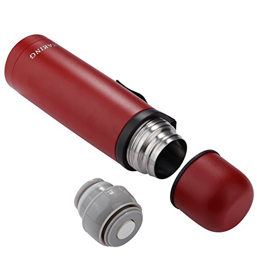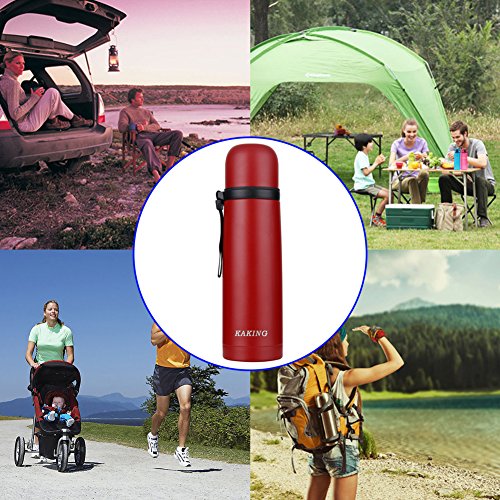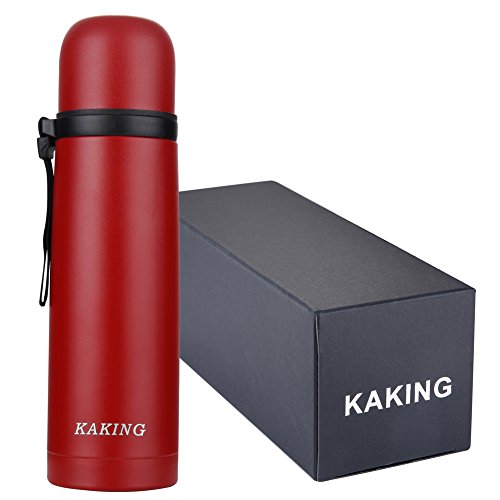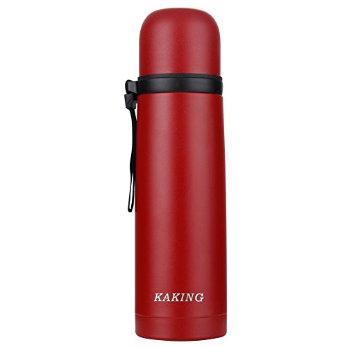 KAKING Stainless Steel Vacuum Insulated Water Bottle 17 Ounce Beverage Bottle Leak-proof Double Walled Travel Flask Keep Cold or Hot for More Than 24 Hours (red)