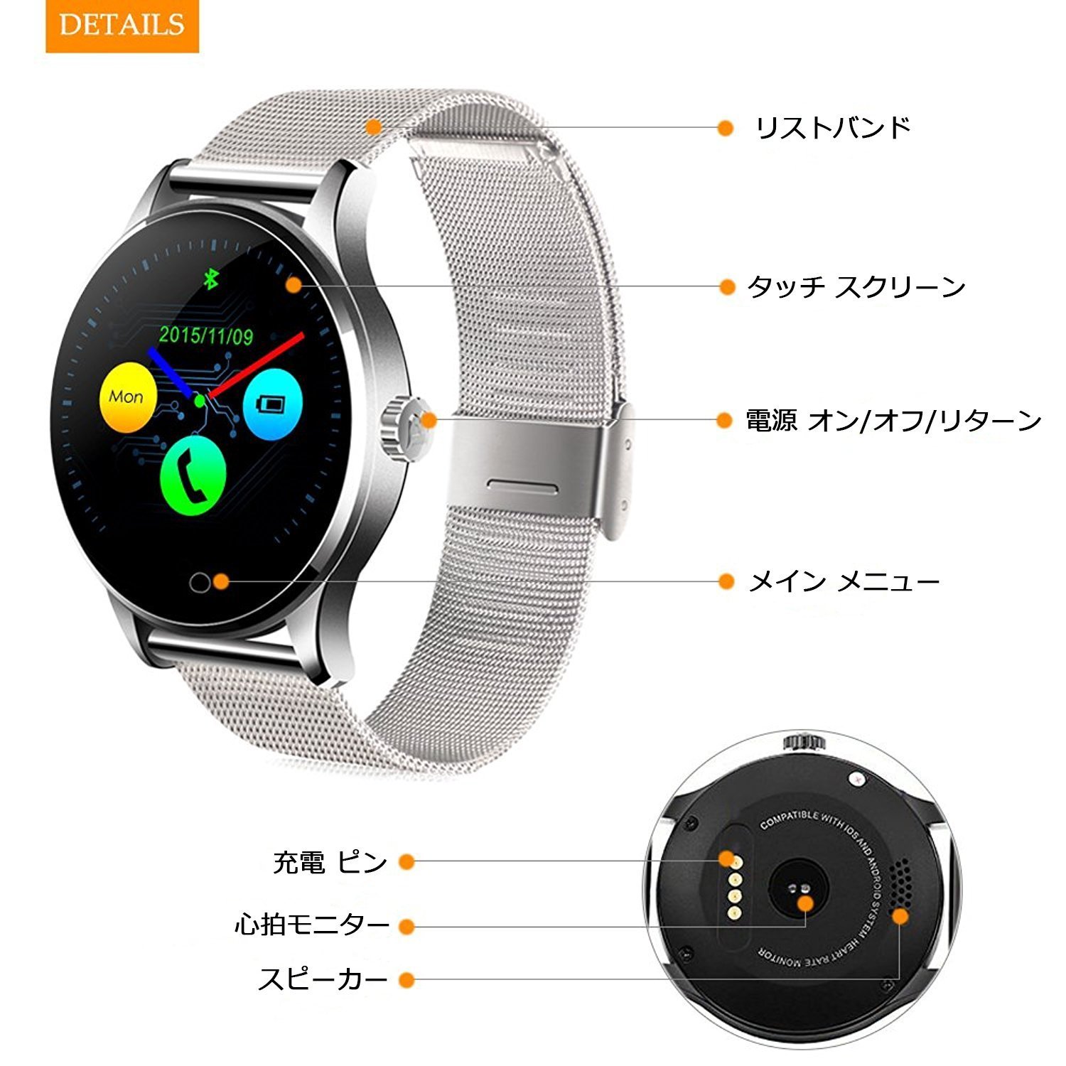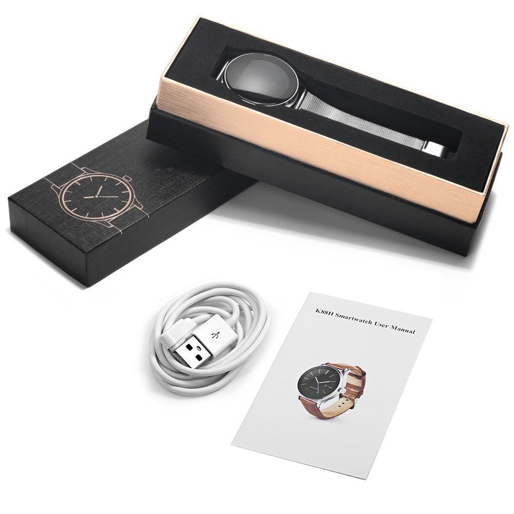 Package contents: 1 x K88H smart watch, 1 x USB charging cable, 1 x English and Chinese manual
