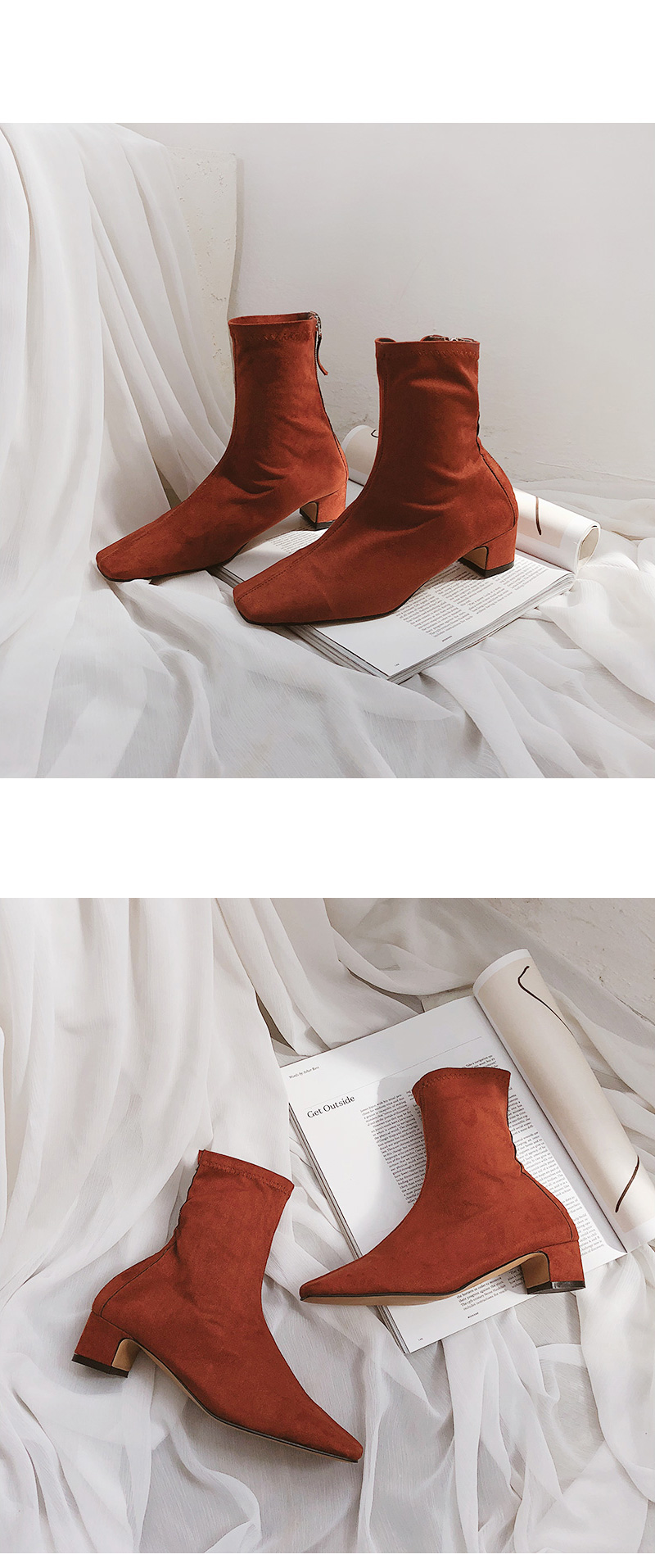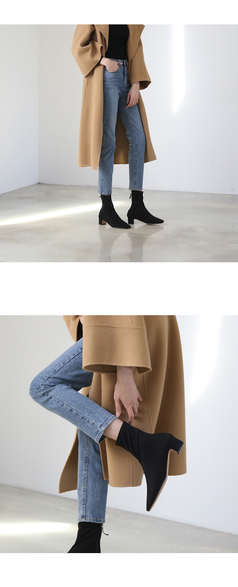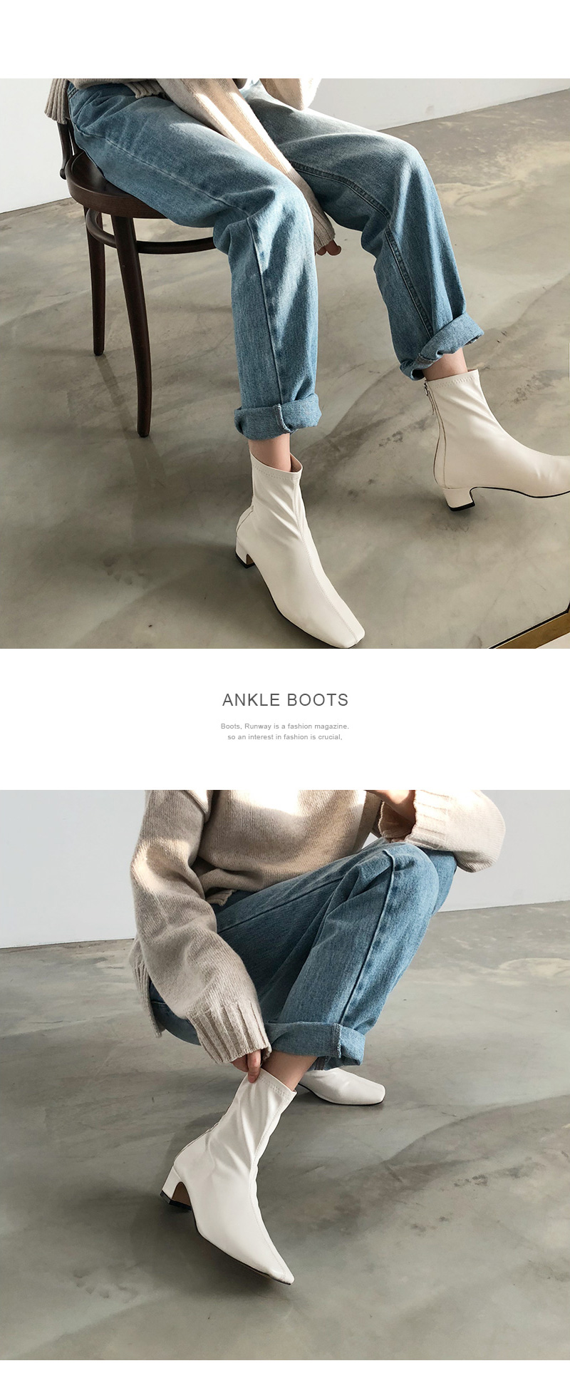 자연스럽게 주름이 지는 소프트한 텍스쳐로 발에 무리없이 감기는 앵클부츠입니다.